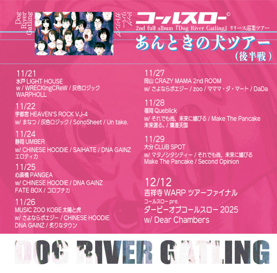 2025.11.24(Mon) 静岡UMBERにてコールスロー 2nd full album 「Dog River Gatling」リリース巡業 『あんときの犬ツアー』に出演が決定いたしました。
