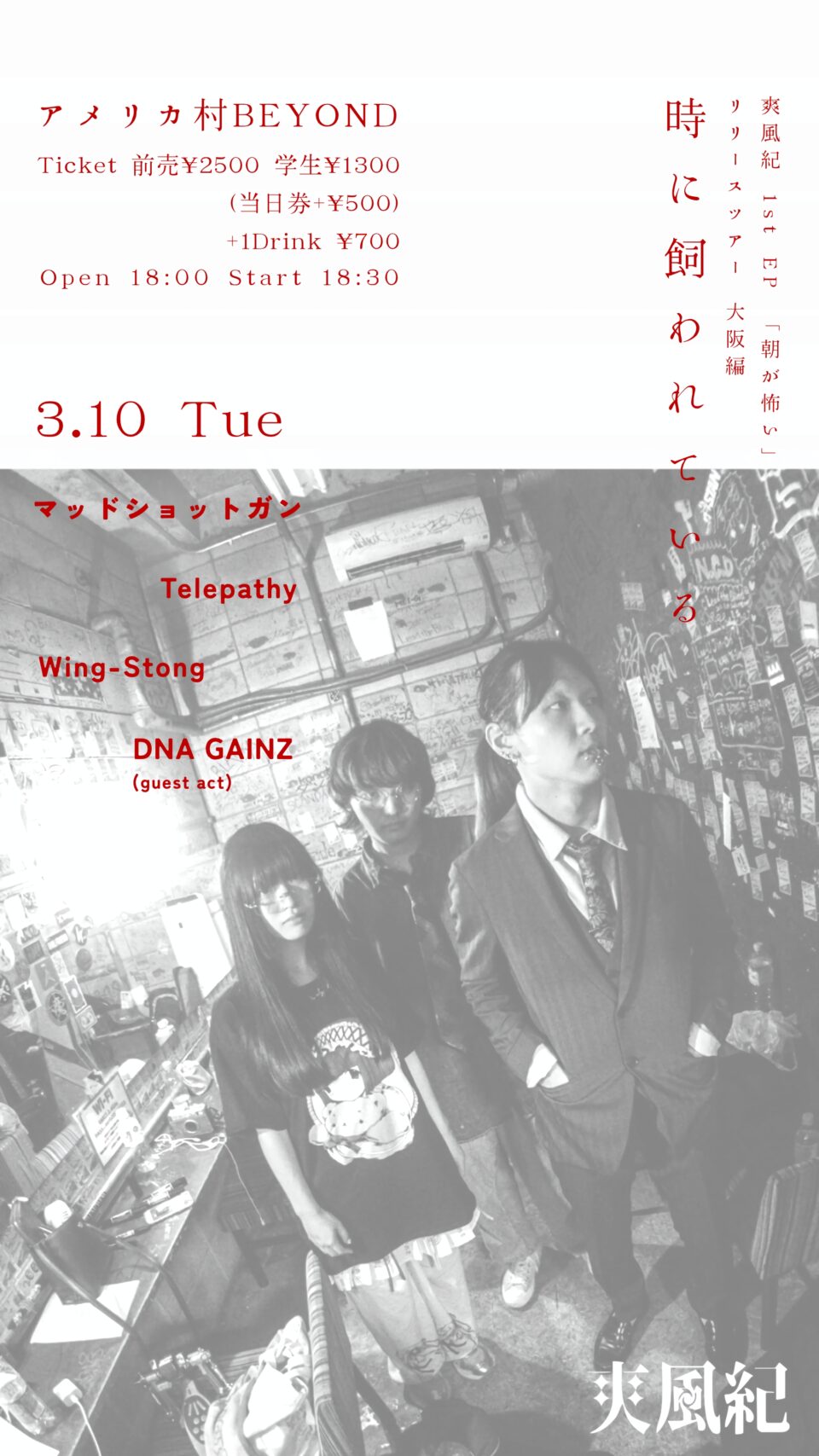 2026.03.10(tue) アメリカ村BEYONDにて爽風紀1st EP「朝が怖い」リリースツアー 「時に飼われている」 大阪編に出演が決定いたしました!