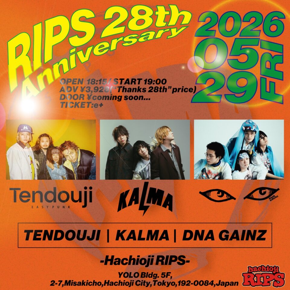 5.29(Fri) 八王子RIPSにて **Hachioji RIPS 28th Anniversary**に出演が決定!